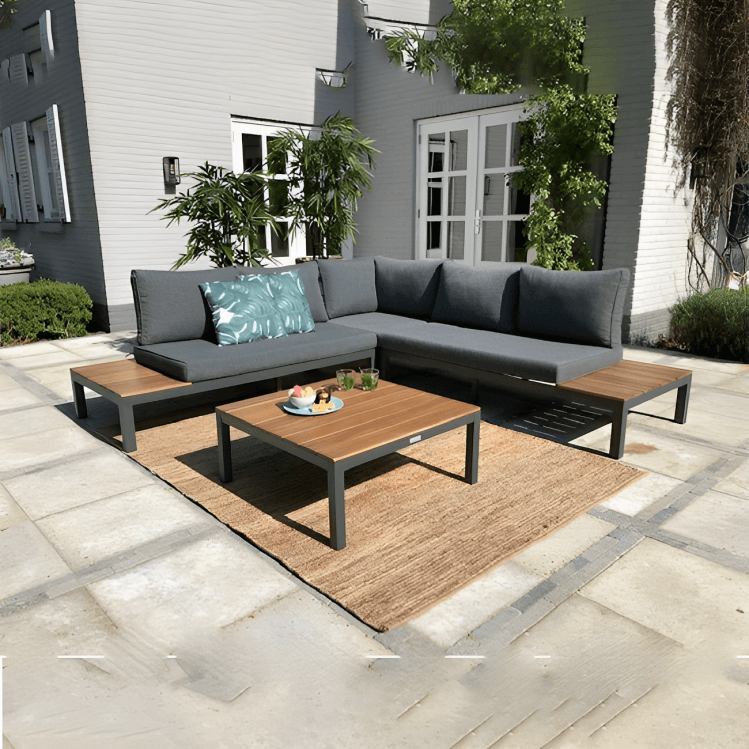 ركنة حديقة معدنية بجوانب خشبية