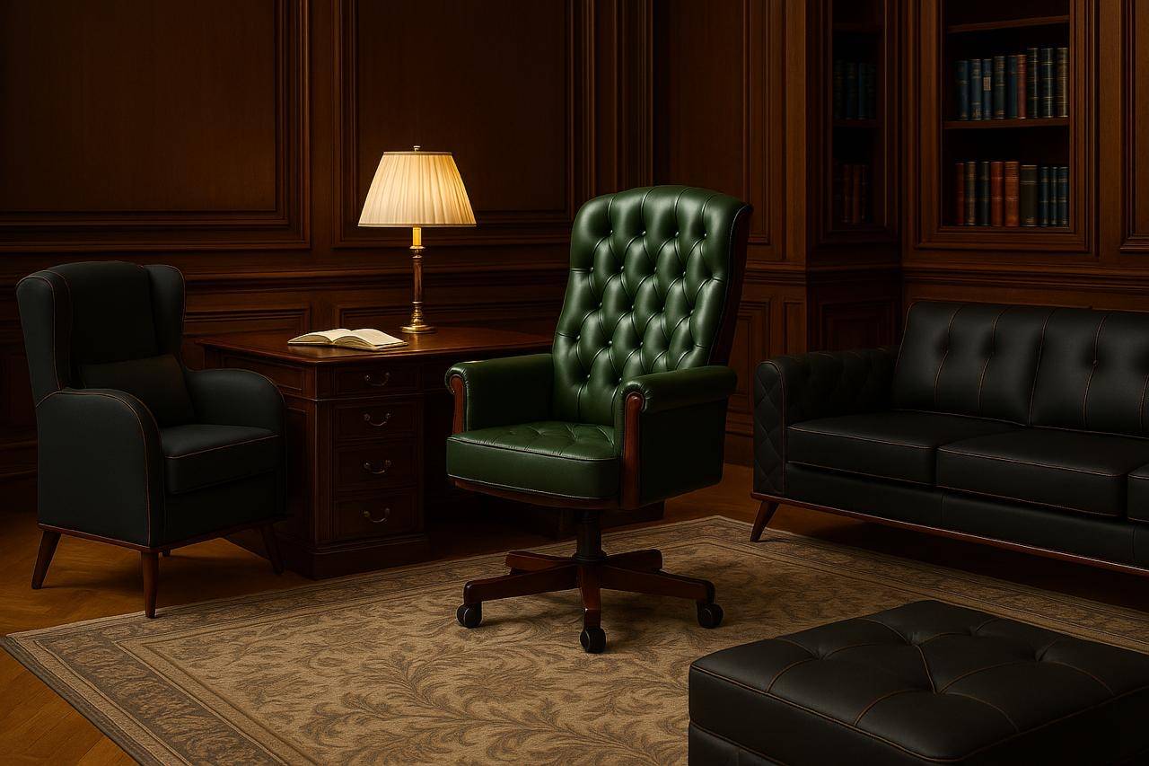 كرسي مكتب جلدي فاخر بقاعدة دوارة وخمس عجلات دوارة