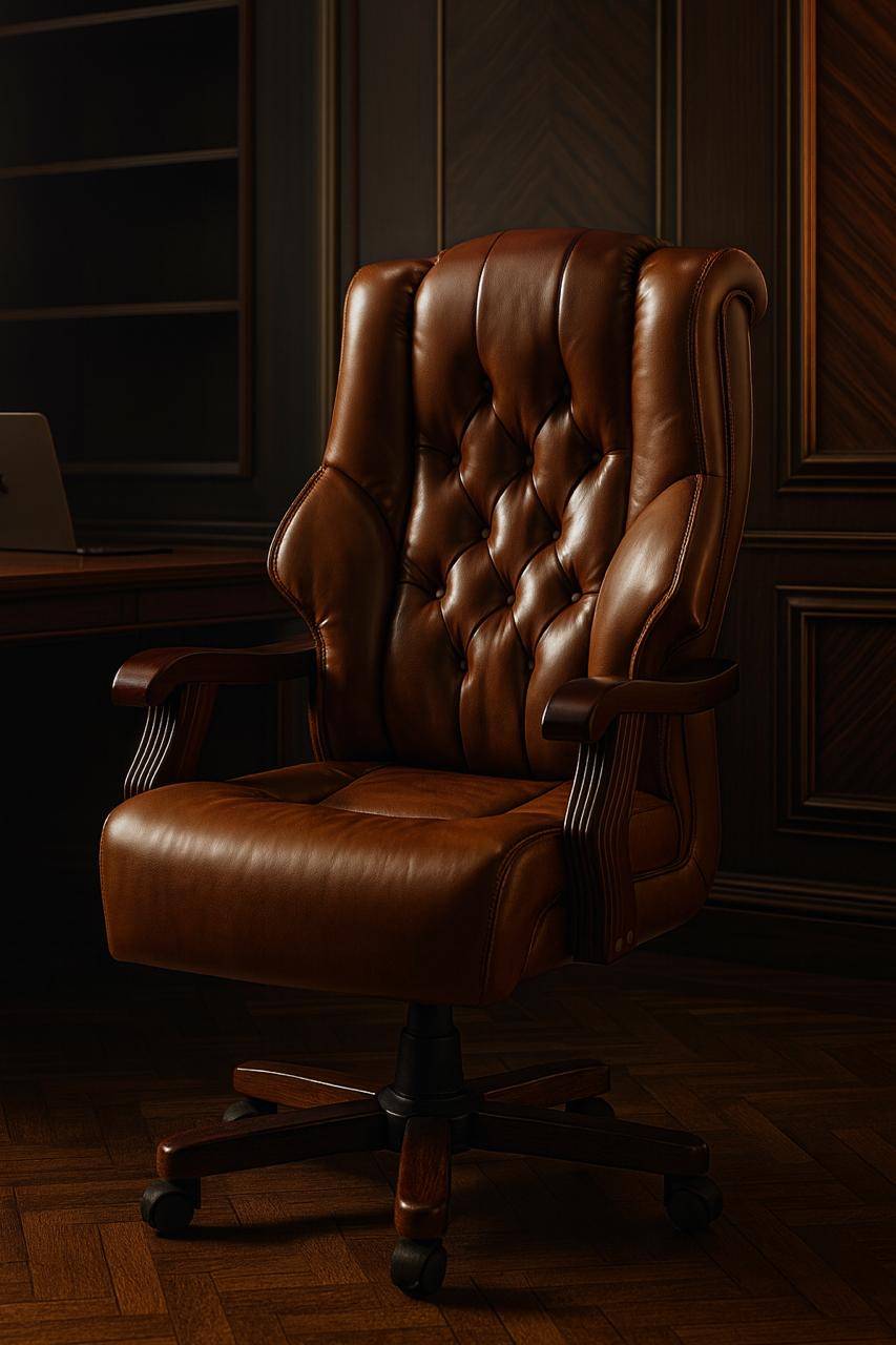 كرسي مكتب جلدي فاخر بقاعدة دوارة وخمس عجلات دوارة