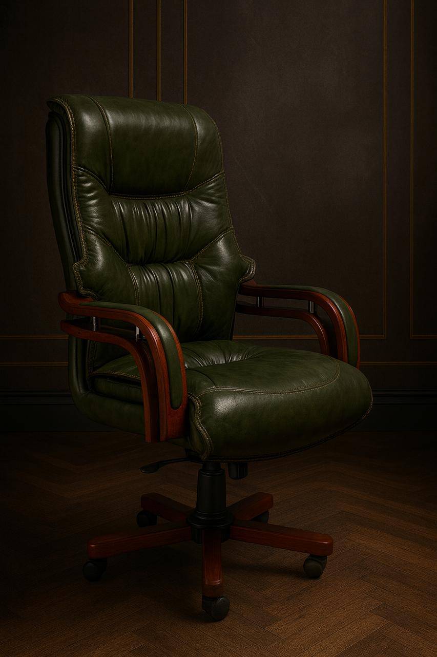 كرسي مكتب جلدي فاخر بقاعدة دوارة وخمس عجلات دوارة